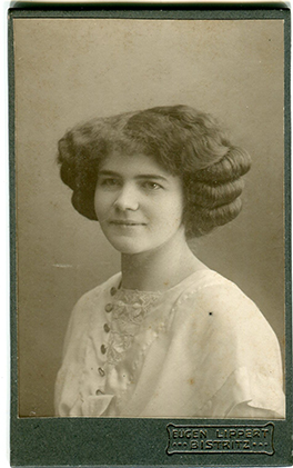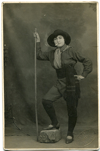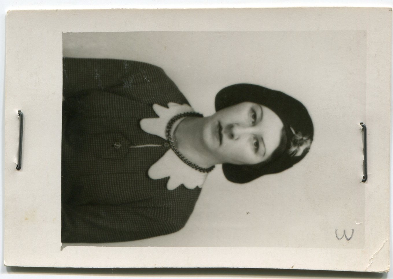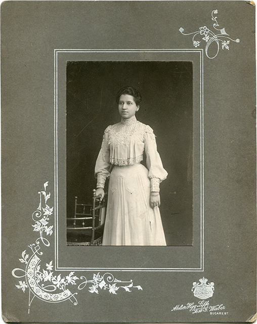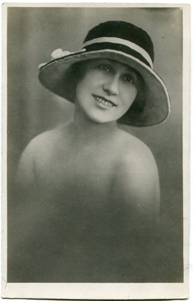 Descriere: fotografie de studio, portret de femeie cu pălărie;
