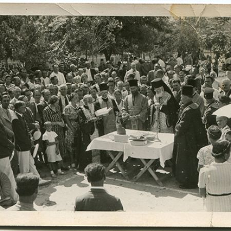 Descriere: Punerea pietrei de temelie funamentale a căminului cultural Movila C. Sylva, 29 august 1938;