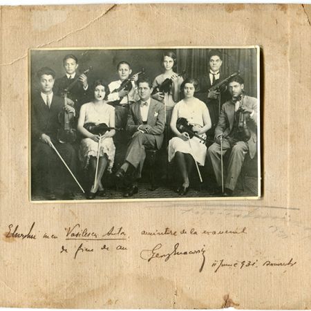 Titlu: Tineri violoniști împreună cu profesorul