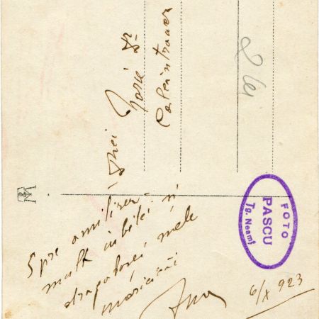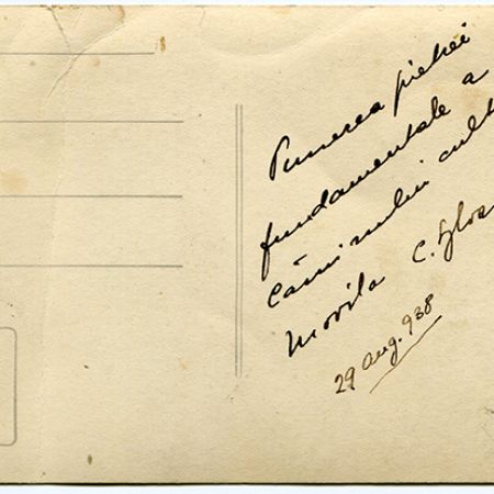 Însemnări: ''Amintește-ți din când în când de un nou prieten sincer. 24 VI 1931 P.S Cel ce v-a stricat deranjul''.